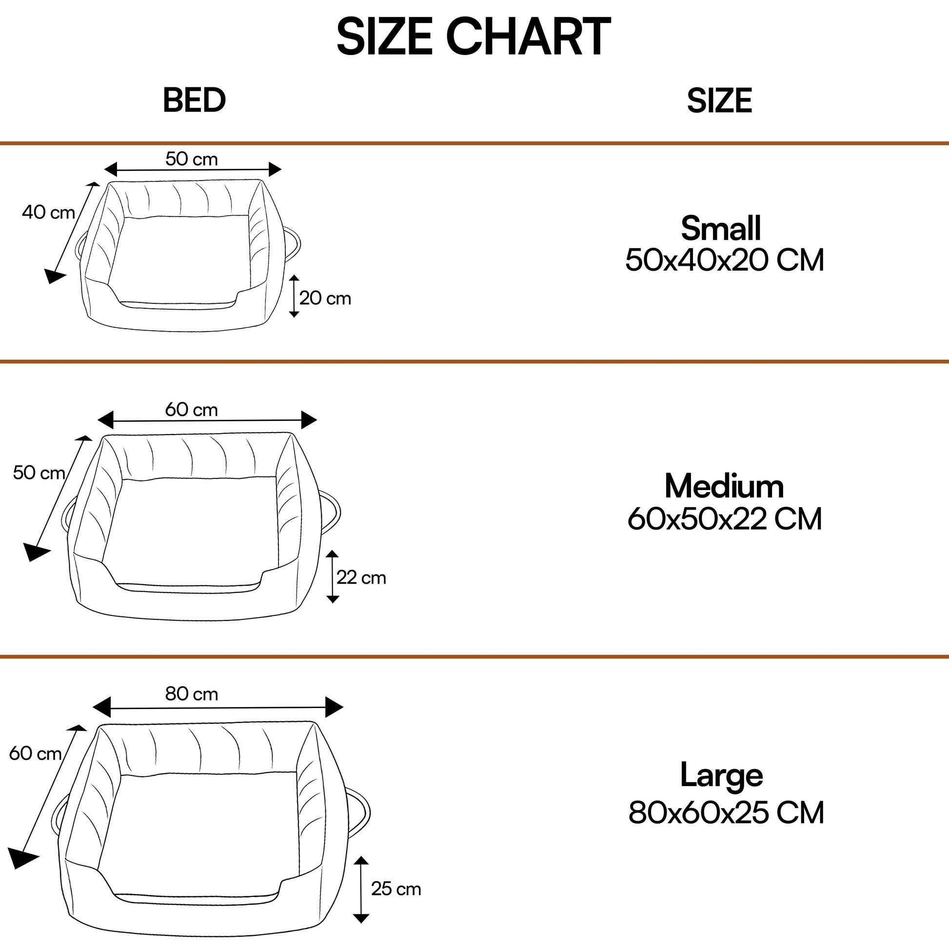 Small (50x50x20 cm): Perfect for puppies, cats, and small breeds.