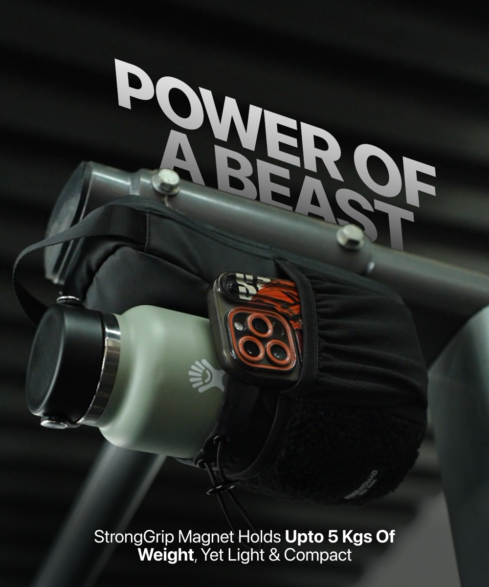 - Attach the bag to any metal surface using the StrongGrip magnet.